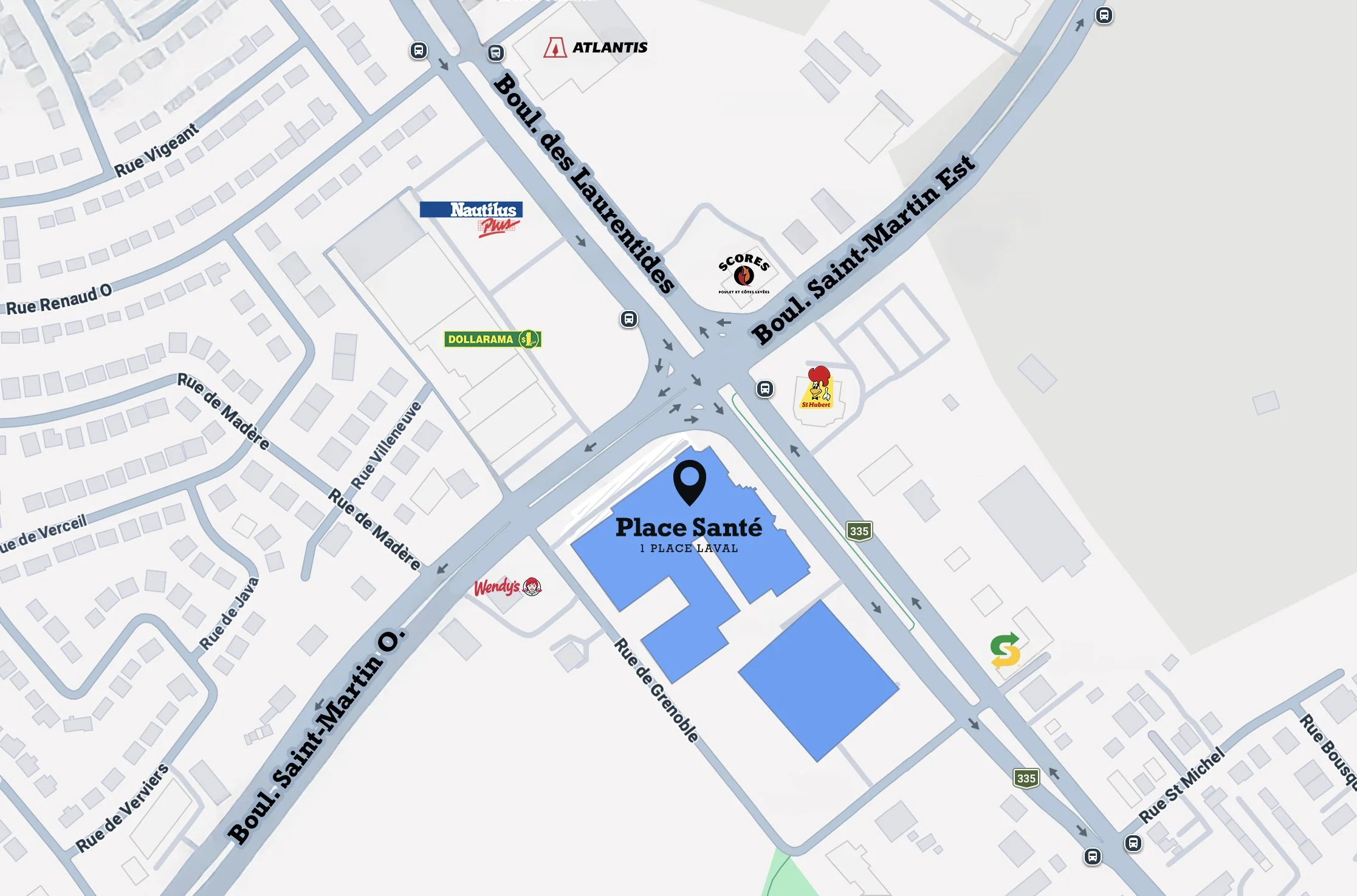 Place Santé, située au 1 Place Laval, fait partie du complexe Place Laval, regroupant cinq immeubles totalisant 865 000 pi².